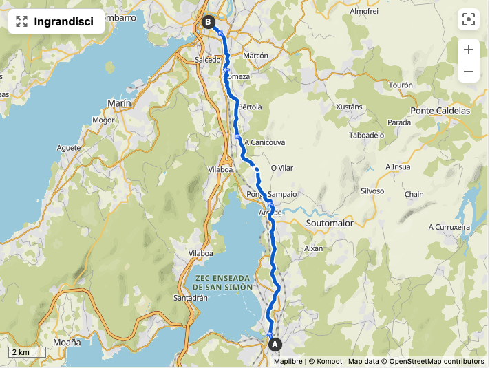 Santiago Tappa 1: Redondela-Pontevedra Difficile 05:37 20,6 km 3,7 km/h 320 m 320 m Sentiero escursionistico: 3,33 km Sentiero: 7,07 km Marciapiede: 1.000 m Strada secondaria: 5,60 km Strada: 2,67 km Strada statale: 669 m Fuori rete (sconosciuto): 226 m